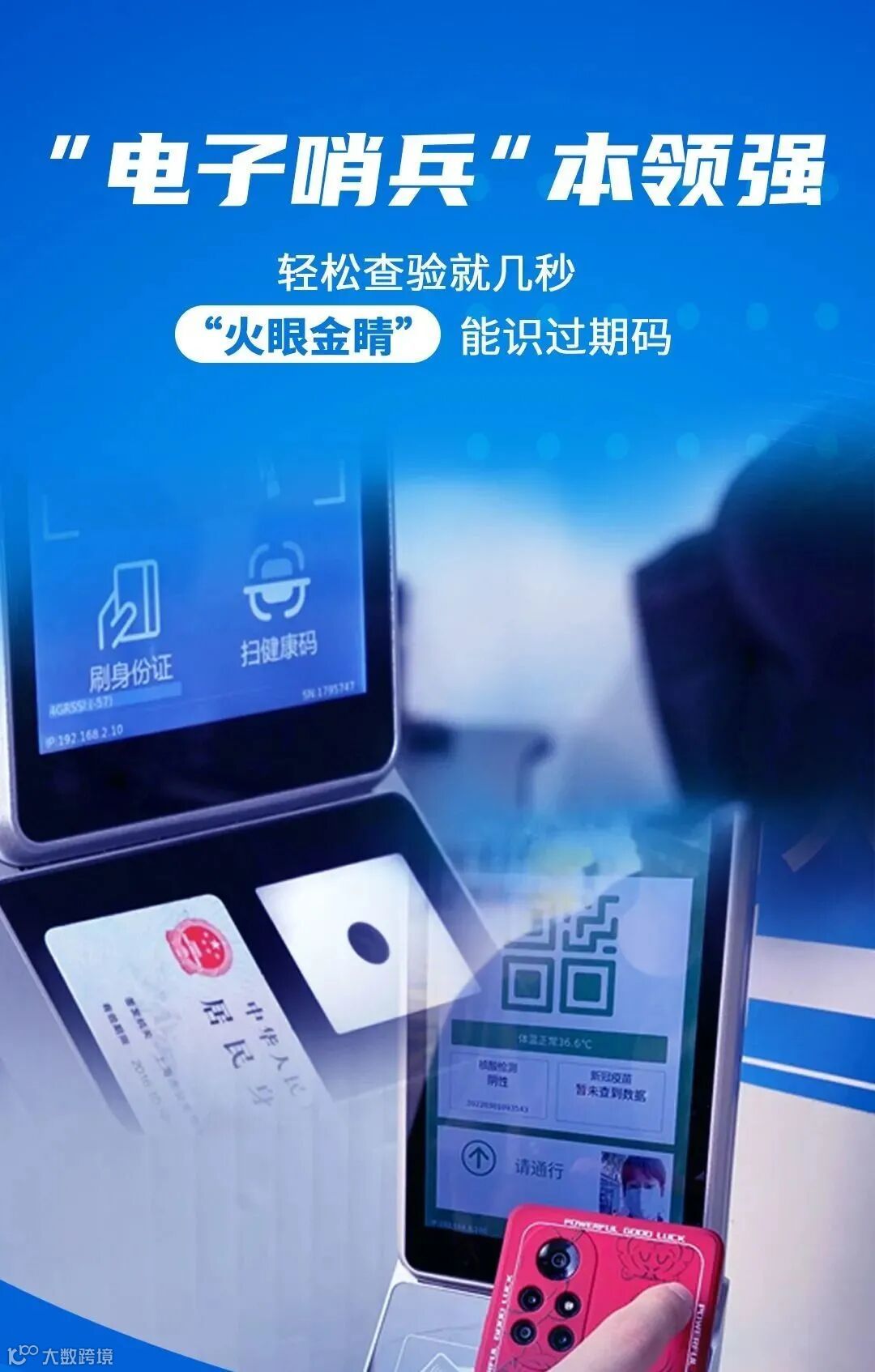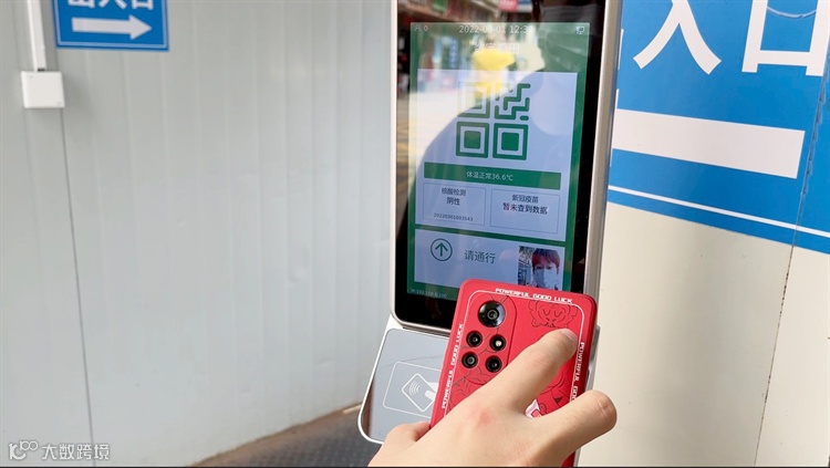 这是一台测温、通行一体化设备,通过扫描健康码、核验人脸或读取身份证,它能快速识别通行人员的实时体温、健康码状态、核酸检测结果和疫苗接种等信息,以往人工查验最少需要半分钟的流程,而今几秒钟就可轻松解决。