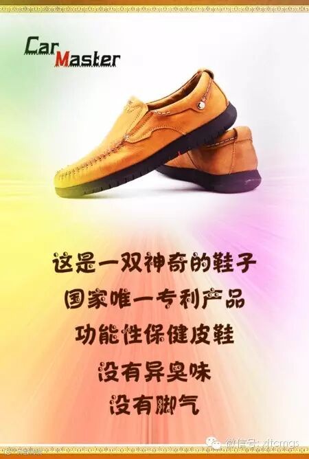 这是一款神奇的皮鞋,大家可能觉得很奇怪,为什么他会这么神奇了,在此我想告诉各位,这款鞋他具备了调理脚气,脚汗,脚臭这些特有的功能,大家可能在想,他除了这些功能外还有一些什么的能够吸引到消费者的一面呢,这个肯定是有的,他不但具有上面的这些功能,而且还是我国唯一一款同时荣获两项国家级发明专利的功能型保健产品,国家专利认证,卖点性极强,我们可以自豪的讲,这款鞋还是我国岂今为止最舒服的一款鞋子,上脚后能让消费者第一时间感受出来,金碑口碑不如消费者的口碑,如果大家卖回去后感觉消费者不满意,我们全额接受退换货,大家如果不信可以自已拿一双鞋回去自已试试,看是不是能达到我们上面所说的技术指标。
