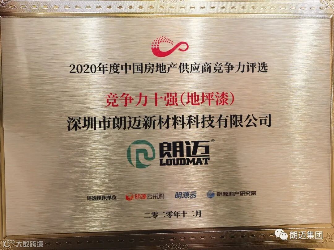 我司在此次2020年度中国房地产供应商竞争力评选中荣获“竞争力十强(地坪漆)”。
