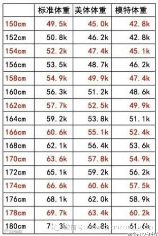 身高体重表,标准体重,美体体重,模特体重,你的体重处于哪个水平?