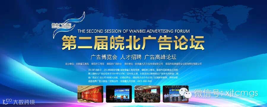 2013有口皆碑,2014再续华章,由安徽省工商局支持,阜阳市工商局、阜阳市国际商会主办的第二届皖北广告论坛将于2014126-7日华彩上演,本届活动以繁荣皖北广告市场为宗旨,搭建广告主\广告公司\传媒人沟通、交易的平台,促进双方合作与交流!这里群英荟萃、异彩纷呈,预计参观人数10000人次!