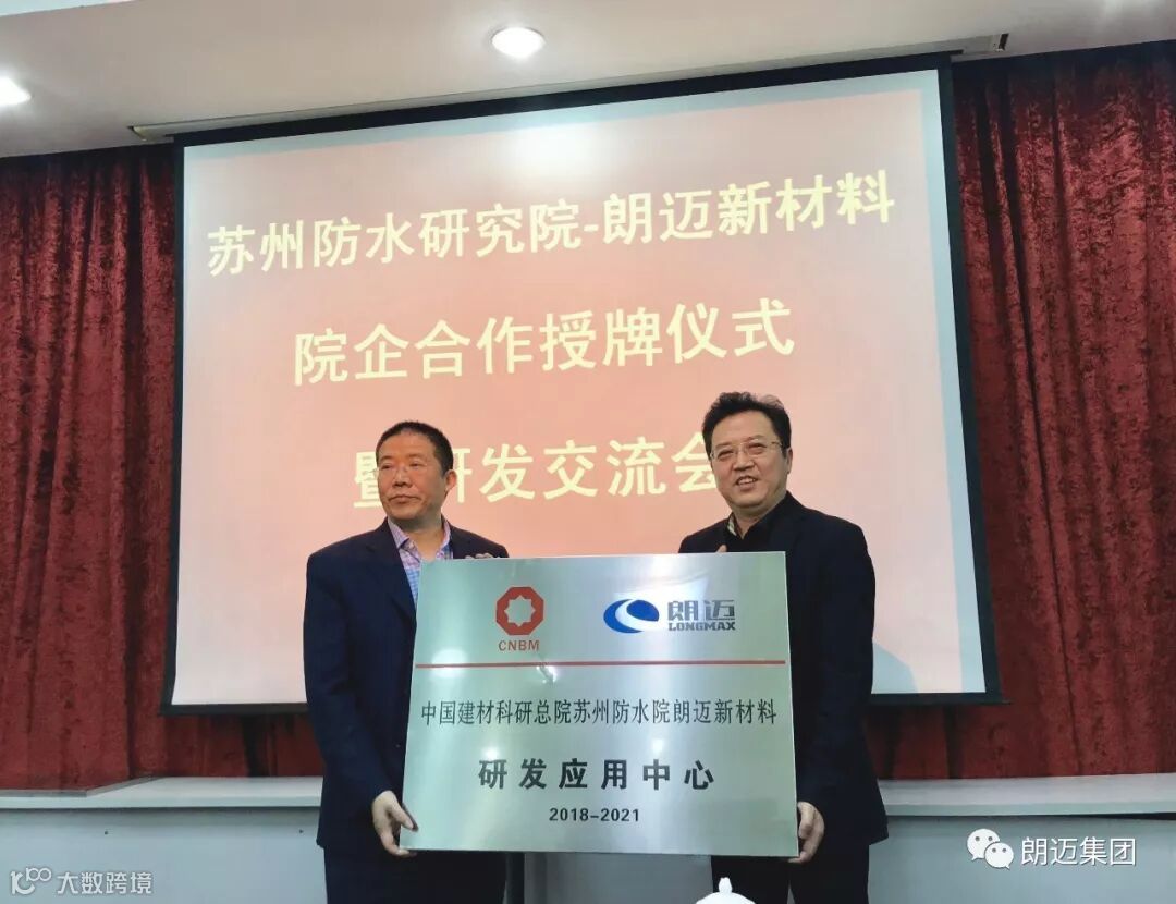 朗迈公司是业界率先提出“防水-防腐”价值倍增理念的国家级高新技术企业,多年来致力于为高端房地产、城市基础设施建设、轨道交通、核电清洁能源、城市综合管廊等高端建筑应用领域提供环保、优质、专业、高效的防水、防腐产品及综合服务解决方案。此前曾同中国航天研究院、中山大学中法核学院等科研机构进行产学研合作并卓有成效。延伸阅读:荣膺国家高新技术企业、获得政府扶持基金、打造标准化研发应用中心……深耕产学研,朗迈一直在路上“。朗迈董事长杜卫国以林徽因的《人间四月天》来比拟本次会议所带来的大爱、温暖与希望,并坚信通过与苏州院的精诚合作,未来的发展必将是大道坦途。“与苏州院的合作是朗迈产学研结合-合伙人制战略发展的重大突破”,杜总说道。