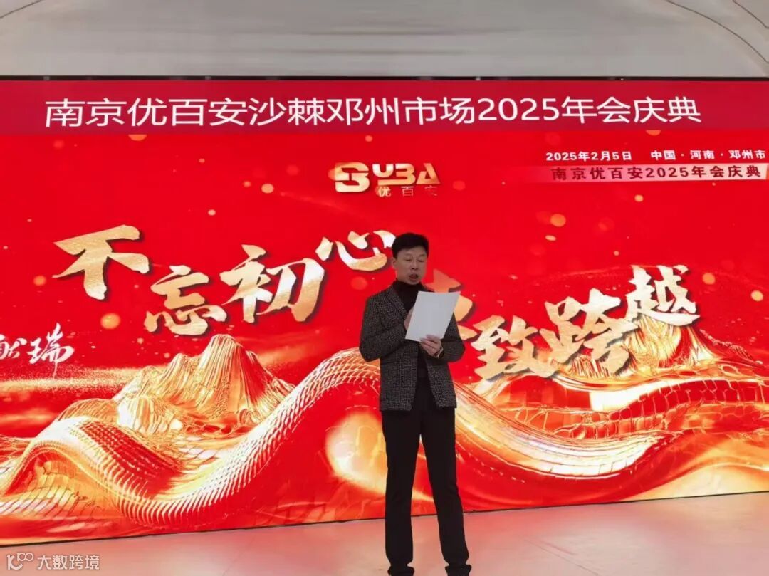 活动当日,南京优百安生物科技有限公司高层领导、邓州市场团队及特邀嘉宾齐聚一堂。公司总部运营总经理姚总亲临现场致辞,高度肯定邓州市场团队在 2024 年的努力与成绩。他指出,邓州市场在沙棘产品推广上展现出强劲开拓能力与团队凝聚力,2025 年公司将深化战略布局,以创新驱动服务升级,为沙棘事业发展提供更坚实后盾,助力邓州市场进一步拓展沙棘产品市场版图。