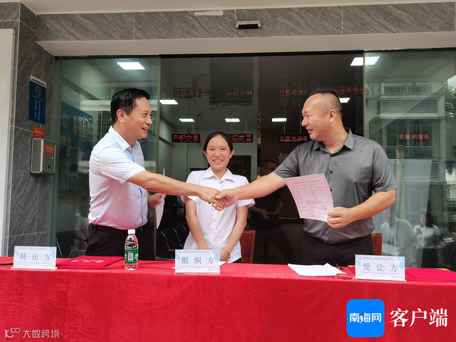 ▲5月28日,海南首批海域使用权流转项目通过农村产权交易市场成交签约仪式在三亚市天涯区举行。
