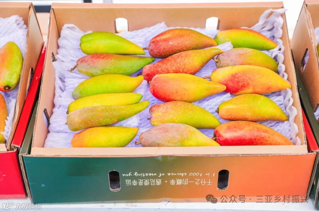 据了解,三亚海棠湾金煌芒果、贵妃芒果主要产于海棠区升昌村、东溪村、南田居、北山村、铁炉村、龙江村、洪李村、海丰村、藤桥村、风塘村、龙海村、青田村、湾坡村等,种植面积6000多公顷,年产量近20万吨。产业发展过程中,根据区域优化布局,聚焦主导品种、错开不同产期,通过规模化生产基地的道路、水电的互联互通、小型机械化等设施设备建设,集成应用绿色投入品,改善果园生态环境等技术。