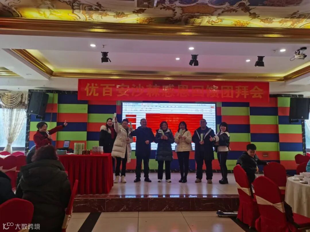 12 月 28 日,南京优百安重庆·合川地区沙棘感恩团拜会在热烈的氛围中圆满结束。此次年会吸引了 200 人到场参与,现场气氛高涨,活力四溢,一系列精彩纷呈的舞蹈表演更是将会场气氛推向了高潮,为与会者带来了一场难忘的视听盛宴。