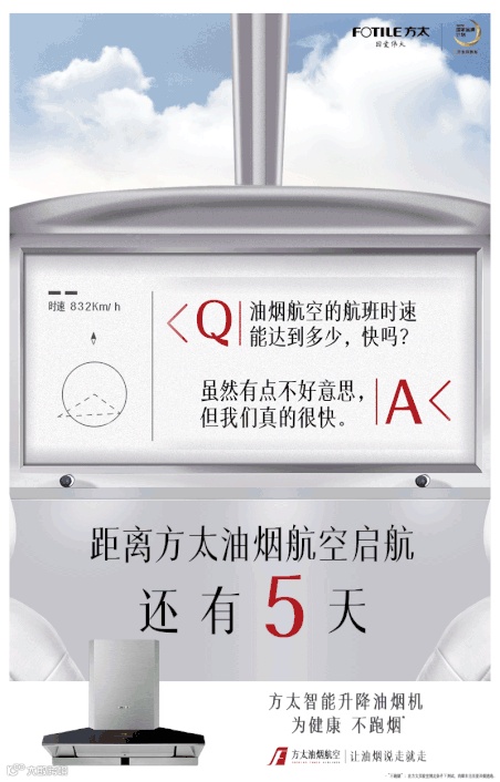 这一次,方太的新广告再次“不务正业”,推出了“油烟航空”的概念。