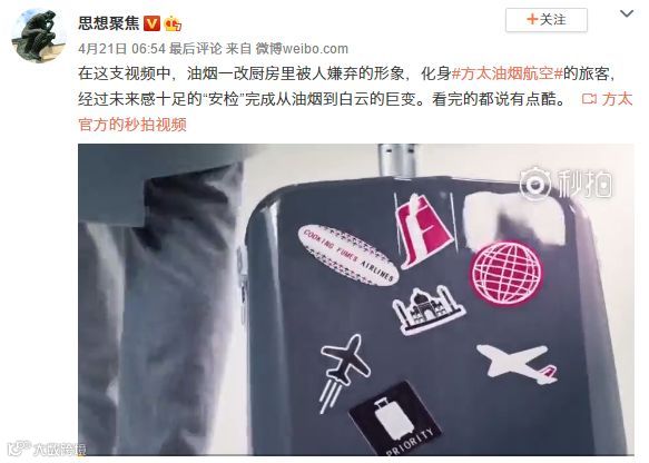 微博倒计时愈演愈烈,在4.11日发布视频之后,#方太油烟航空#主题活动正式引爆。