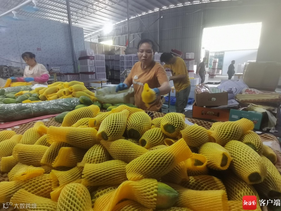 工作人员在打包三亚红心木瓜。记者 利声富 摄