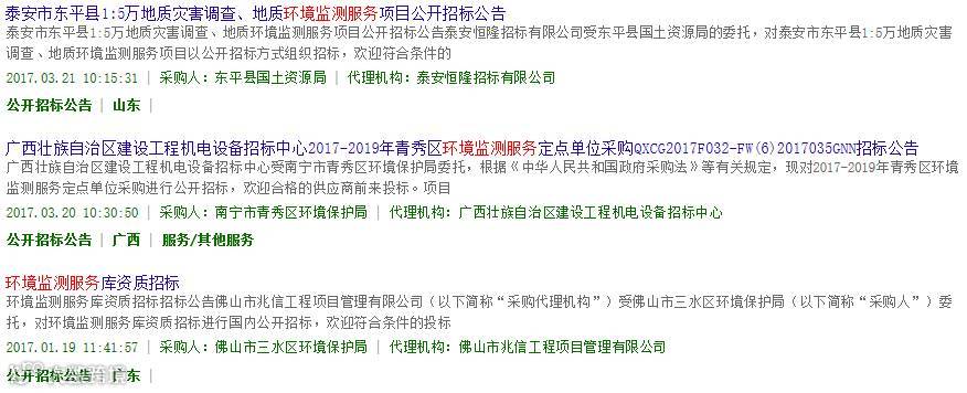部分经费充足的地区和部门才由政府招标采购第三方监测服务。