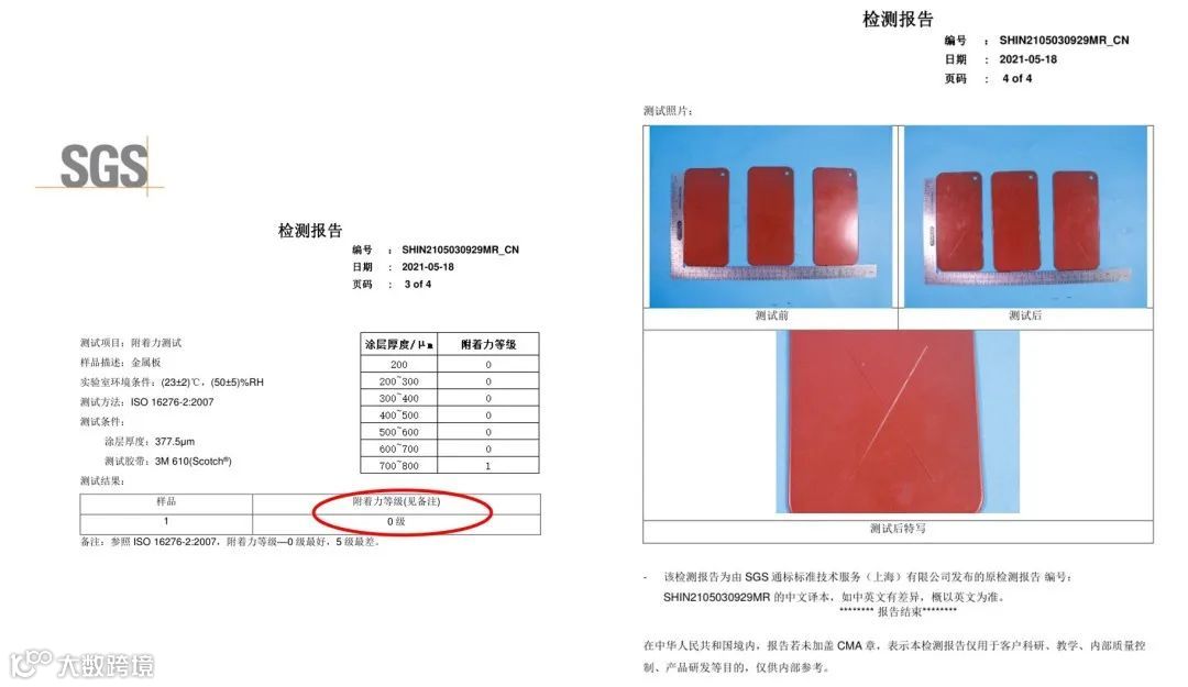 SGS附着力检测报告(最高等级0级)