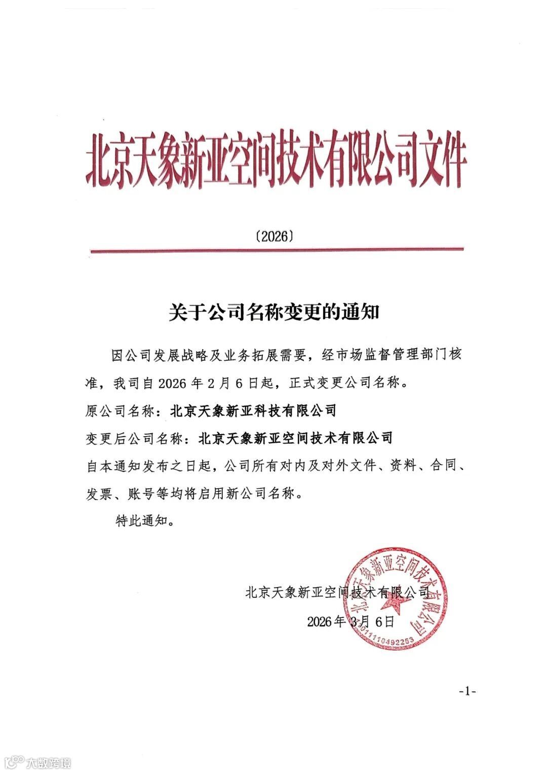 感谢各级部门、广大合作伙伴及各界朋友长期以来的信任与支持!名称虽变,初心不改,北京天象新亚空间技术有限公司将以此次更名为新起点,继续与各界携手,共赢未来!