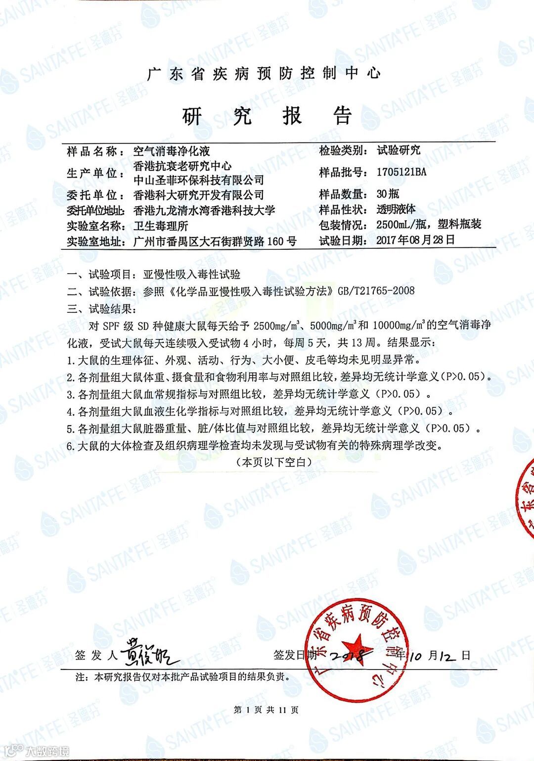 而且植物抗菌液经过了广东省疾病预防控制中心出具的《亚慢性吸入毒性试验报告》证实了,人体长期吸入无害。