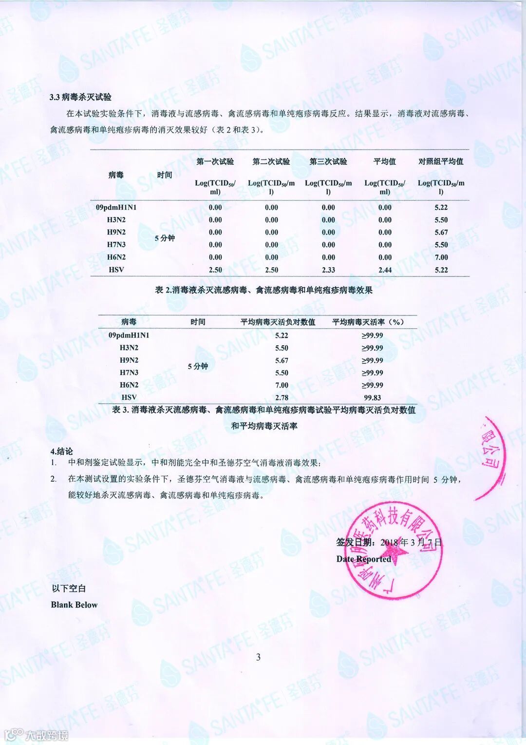 /流感病毒、禽流感病毒杀灭报告/
