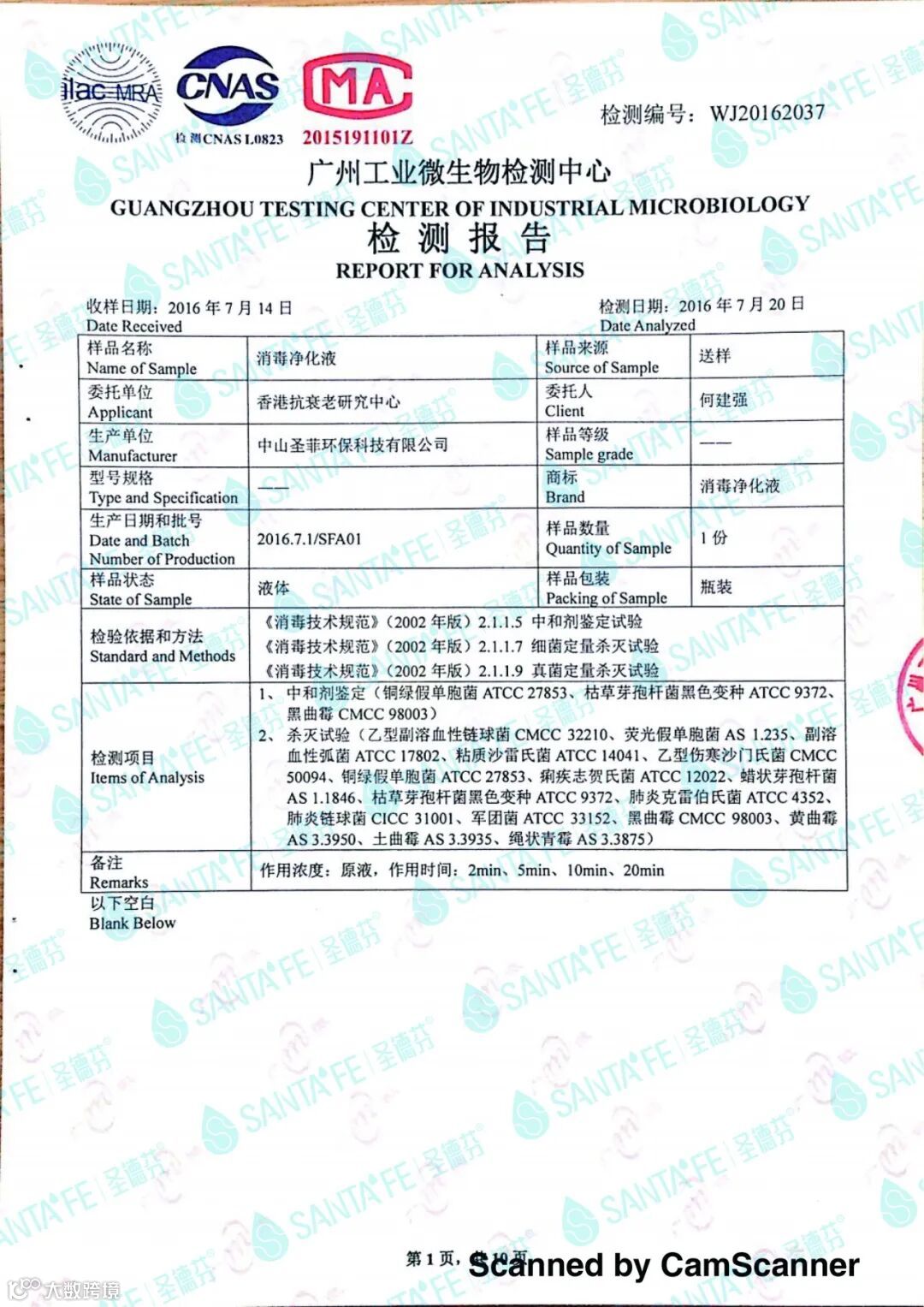 对大肠杆菌、金黄葡萄球菌、军团菌、黄曲霉菌等等16种!杀灭率高达99.99%。