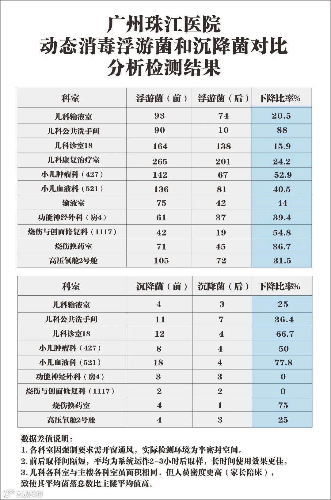 广州珠江医院动态消杀浮游菌和沉降菌