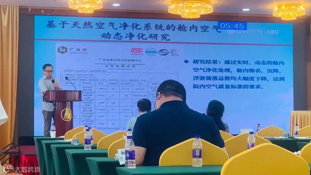 圣菲环保携圣德芬植物抗菌空气净化系统与深圳市人民医院&珠江医院最新的圣德芬动态消杀院感改善课题成果参与此次盛会,并由圣菲环保的顾问赵昕博士做“基于天然空气净化系统的高压氧舱内动态净化研究”的专题演讲。该次演讲是研讨会上仅有两家企业的研究专题演讲。