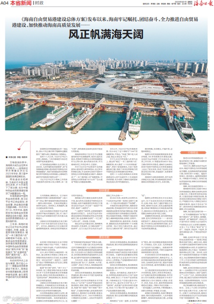 《海南自由贸易港建设总体方案》发布以来,海南牢记嘱托、团结奋斗,全力推进自由贸易港建设,加快推动海南高质量发展。