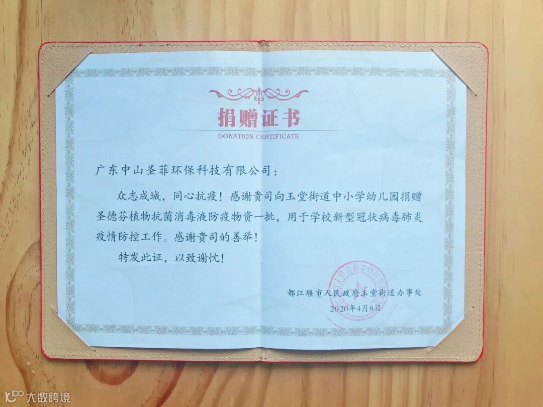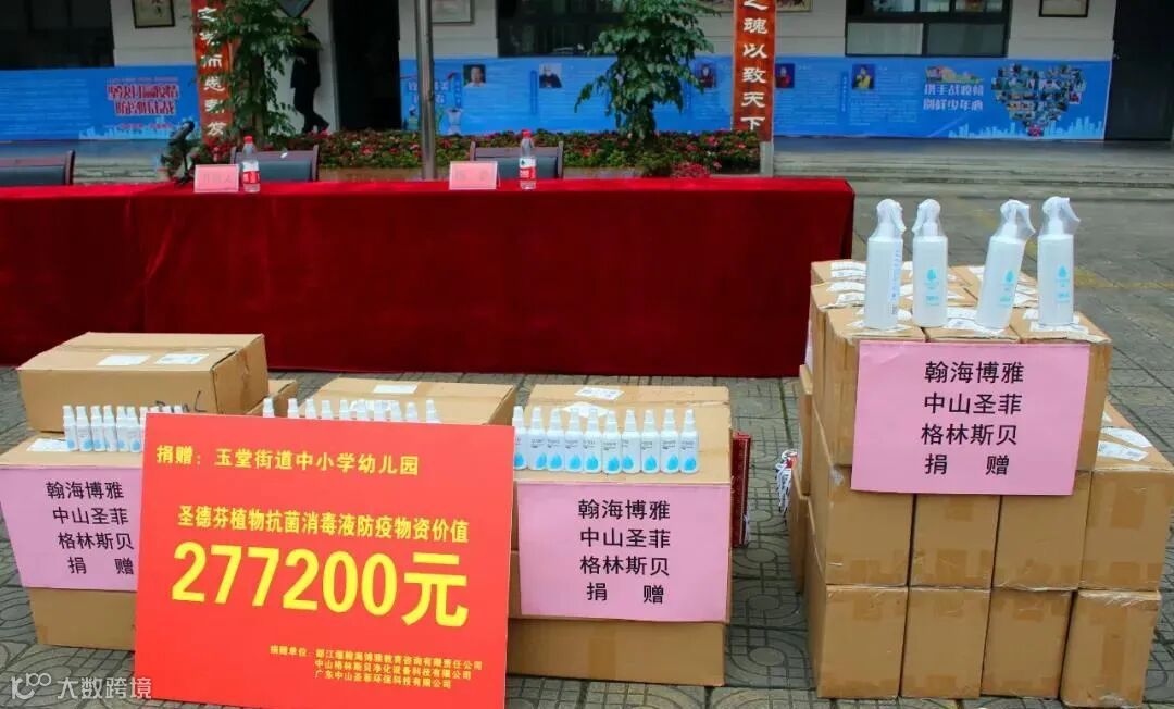 日前,我司了解到四川都江堰玉堂街道中小学幼儿园面临开学而防疫物资匮乏情况后,积极践行公益使命,解囊相助向四川都江堰玉堂街道中小学幼儿园赠送一批植物抗菌消毒液防疫物资,以助其能保障师生健康安全、复课开学的工作顺利展开。