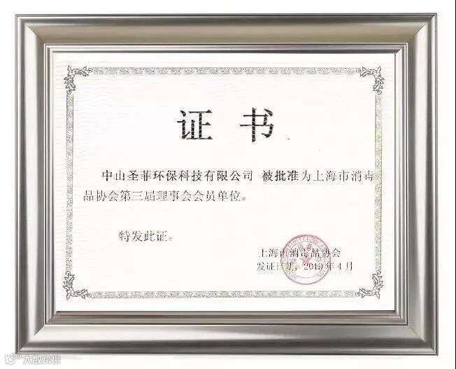 荣膺上海市消毒品协会第三届理事会会员单位