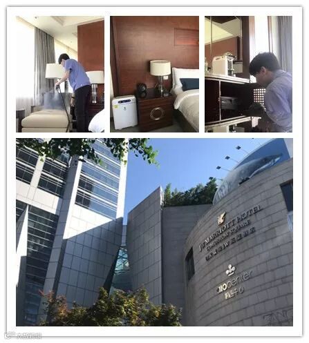 为上海明天广场万豪酒店实施除甲醛祛味工程。