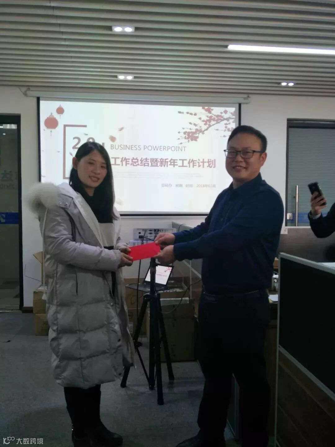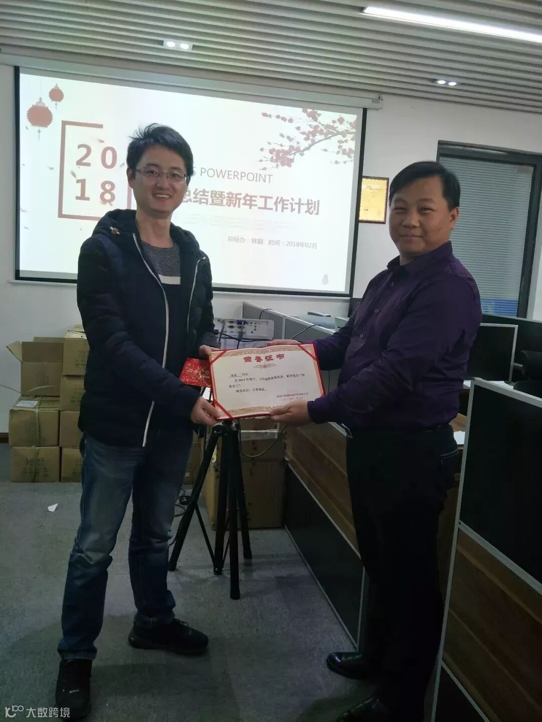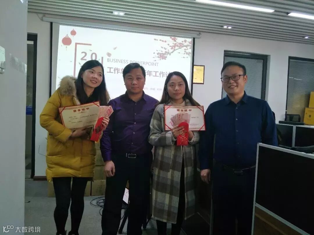年会对2018年绩效管理情况进行了通报,评选出年度优秀员工,由林总、卢总现场颁发荣誉证书和奖励金。