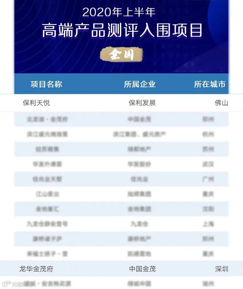 克而瑞-2020上半年产品测评全国入围项目榜单出炉,其中,筑博设计的佛山保利天悦项目荣登榜首!龙华金茂府(施工图设计)项目名列第十二位。