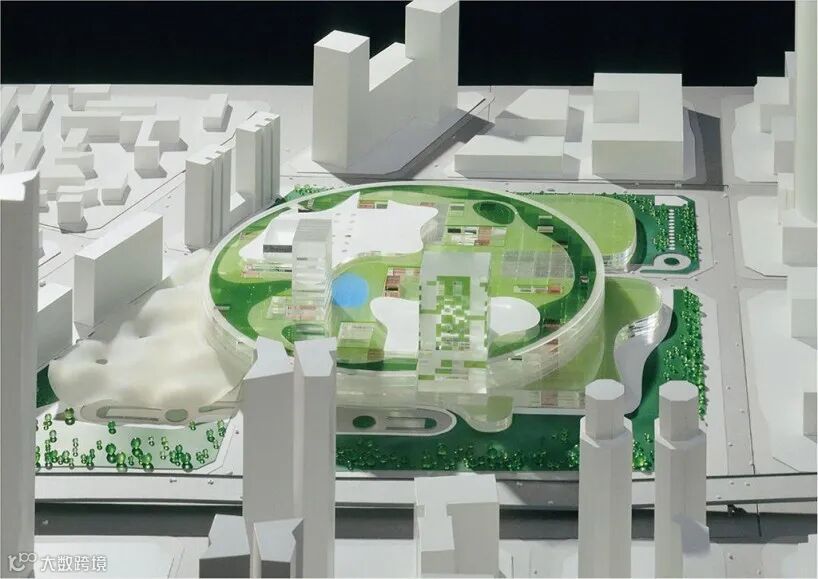 场地中有山,这类项目的常规做法是在建筑前做大广场以及给建筑设计出有权威感的立面。若想要在竞赛中胜出,我们必须在把握形象为首要矛盾的基础之上创造可以脱颖而出的形象。但是在设计策略上,我们没有遵循常规做法,而是产出了没有一个明确造型的形态,最终获胜。