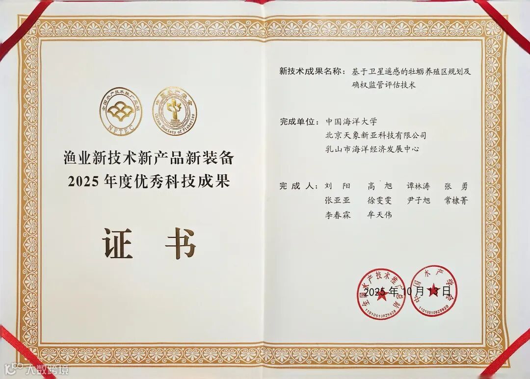 依托产学研合作创新模式,天象新亚以卫星遥感综合服务为核心解题思路,在养殖用海管理新政背景下,助力渔业资源科学化服务落地,推动养殖用海管理优化升级。2024 年,公司与中国海洋大学联合打造的产学合作示范项目 —— 乳山牡蛎养殖区遥感监测项目,成功通过专家验收,为深远海养殖科学化、智能化发展注入新动能!