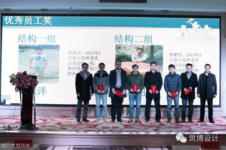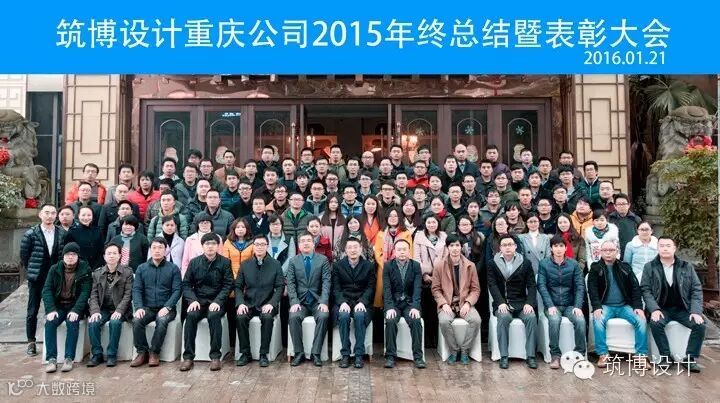 整个会议历时四个小时,分为三个环节。首先是公司各部门领导依次汇报2015年度工作报告,然后对2015年度重庆公司优秀员工、优秀新动力、优秀建筑师、优秀专业负责人及筑博管理学院评选颁发的项目经理培训优秀学员、最佳组织奖等奖项进行了表彰,最后重庆公司全体同仁与集团领导共同参加集体团队大合照。