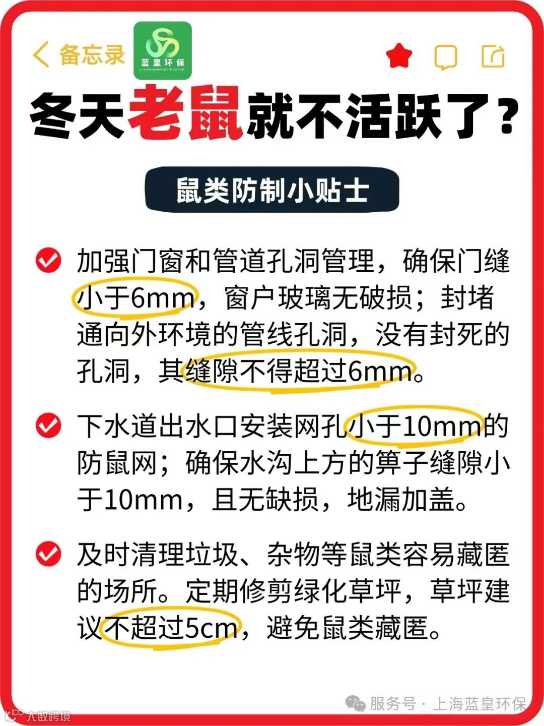 大家要知道,近乎十几种疾病是与鼠类直接相关的。曾经流行中国的钩端螺旋体病就是由鼠类传播。除此之外,老鼠的皮毛上可能还会携带有跳蚤、螨虫、蜱虫等次生害虫。 如果家里进了老鼠,除了要及时布控并检查防鼠设施,也要排查潜在风险点,且做好封堵,才能有效防鼠灭鼠。