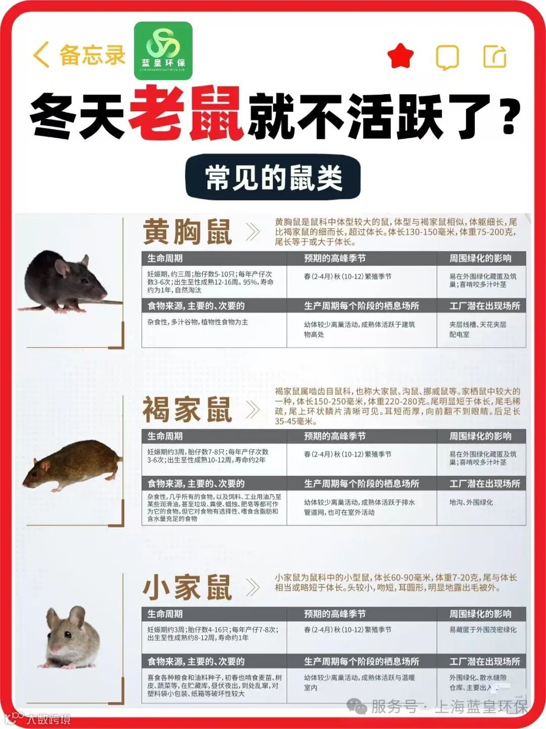 冬季老鼠就不活跃了吗? 其实,寒冷的冬天,在降低户外虫害活动密度的同时,更会驱使鼠类等虫害从户外栖息地往室内转移。