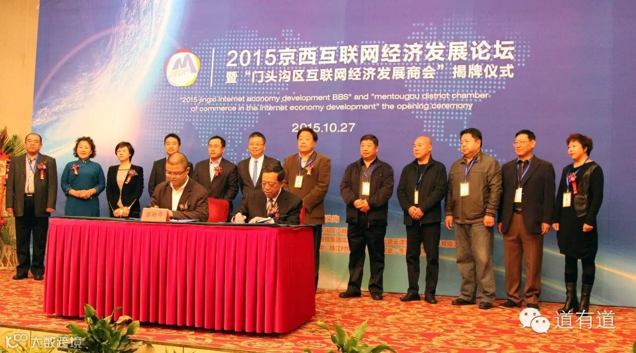 2015年10月27日,由北京市工商联主办,道有道(北京)科技股份有限公司及其合作伙伴-云渡智信公司协办的京西互联网经济发展论坛暨门头沟区互联网商会成立大会,在北京市门头沟区隆重召开。