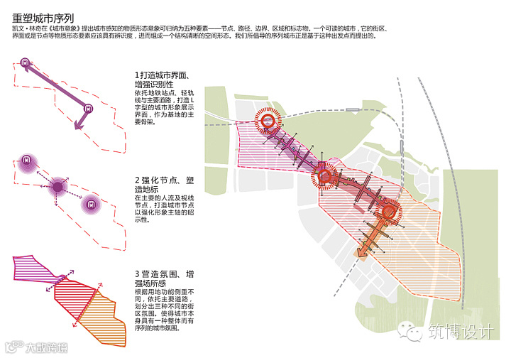 A、打造城市界面、增强识别性。依托地铁站点、轻轨线与主要道路,打造L 字型的城市形象展示界面。