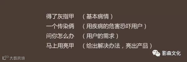 广告首先要把用户的注意力转移到他们自己的身上,在用户关注你的产品之前,先让用户关注他们自己,先让用户看到有阻碍自己的现状,这样我们的产品承诺才更有效果。