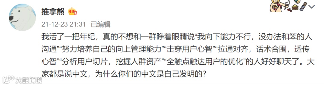 大家的反感主要来自于有些词汇像是故作腔调,不仅言之无物,还造成了理解和交流的困境。