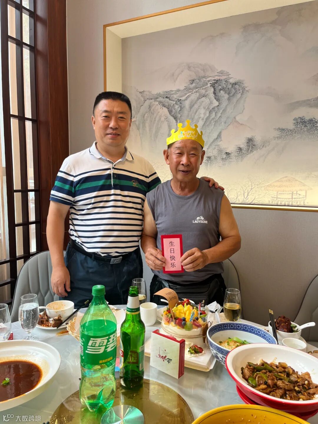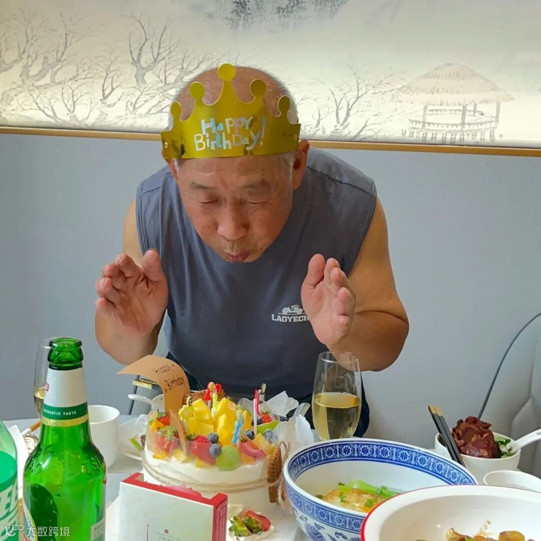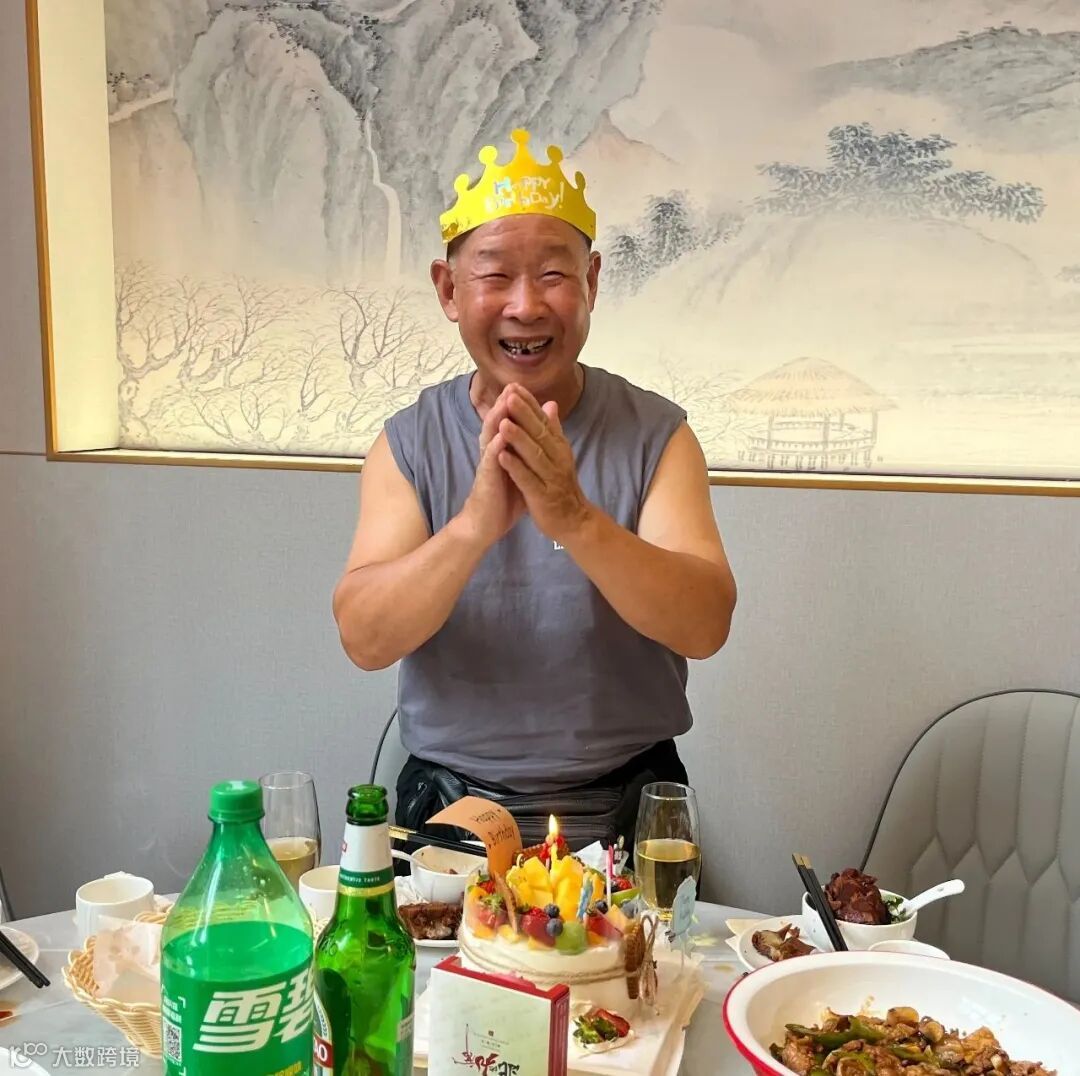 当《生日快乐》旋律响起,餐厅工作人员推着蛋糕穿堂而过——蛋糕顶端蜡烛在阳光下熠熠生辉,映出刘叔满是岁月却依旧闪亮的笑容。