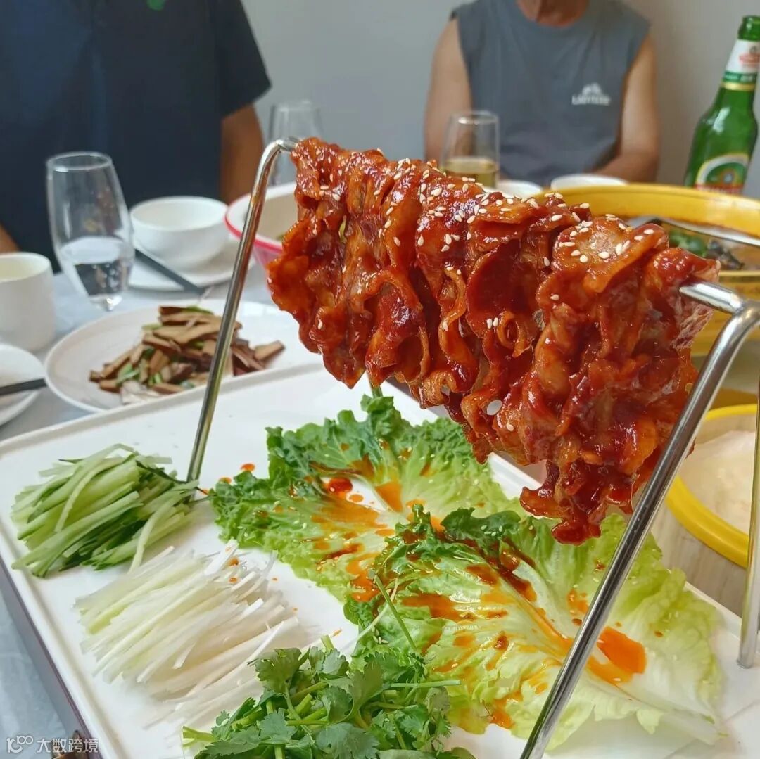 大漠吊烧肉率先登场——外皮焦香炸裂,一口咬下肉汁滚滚,像刘叔半生在项目上劈风斩沙的豪迈;