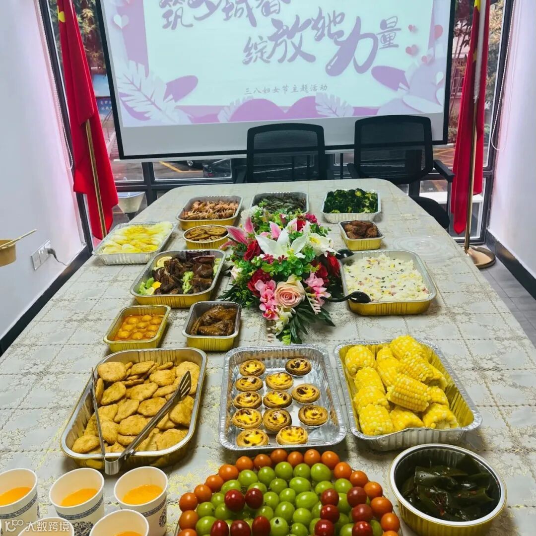 3月7日,公司里弥漫着温馨与欢乐的气息。中午时分,公司总经理王总与韦总带领全体女员工齐聚一堂,共同举办了一场别样的自助餐饮活动。餐桌上摆满了精致的美食,色彩缤纷,香气四溢,仿佛是春天的味道。大家围坐在一起,畅所欲言,分享着生活中的点滴与幸福、工作中的感悟。女职工们身着统一衣裳,如同春日里那抹醉人的绿,为这个节日增添了一份盎然的美。