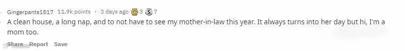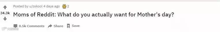 在外国社交网站Reddit上,最近有网友提问:各位妈妈们,母亲节你究竟想要什么礼物?