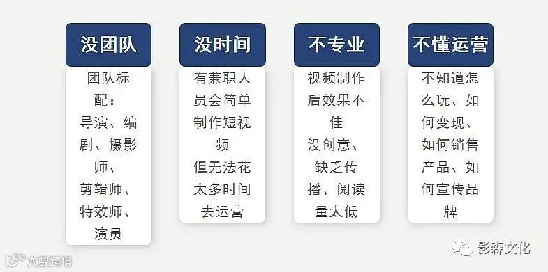 大部分企业缺少运营能力,但想要成功的运营好一个抖音号,必须要有一个专业完整的运营团队,包括策划、文案、导演、拍摄、演员和后期剪辑等人员,对于一个企业来说,承担一个运营团队的负担还是比较大的,最好的办法是将企业的抖音号交给第三方专业的代运营公司,这样可以大大降低运营成本,也可以减少风险,用最低的成本享受更优质的服务。