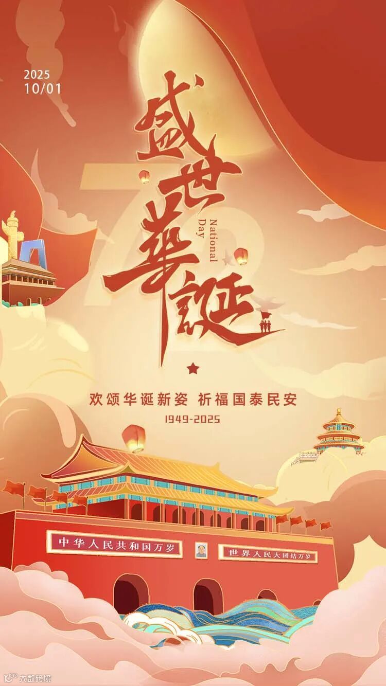 在这普天同庆的美好时刻,我们怀着无比崇敬与感恩的心情,向伟大的祖国致以最诚挚的祝福: