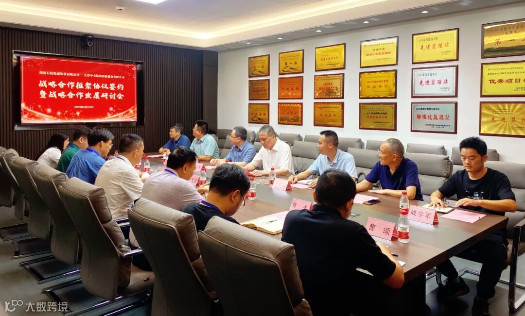 2023年6月16日下午,长沙中大监理科技股份有限公司(以下简称中大监理)与湖南长院悦诚装备有限公司(以下简称长院悦诚)在长沙中大监理总部签约战略合作框架协议。长院悦诚董事长陈治亚,总经理应立军,副总经理李立群,副总经理陈淼林,中大监理总经理王飞龙,副总经理、总工韩汝才,监事会主席、党支部书记李志成,财务总监况建魁等出席了本次签约仪式。