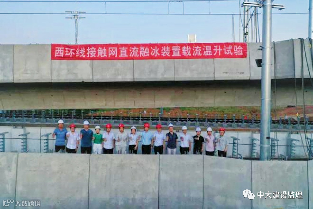 2022年8月9日,长沙轨道交通西环线领导组织长沙中大建设监理有限公司等单位在湖南长沙长株潭城际西环线船形山站附近露天高架区段开展正线接触网直流融冰装置载流温升试验,试验测试正常,取得圆满成功。