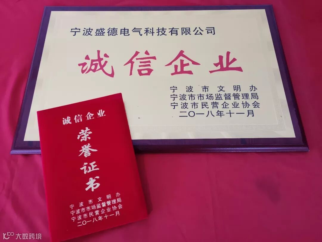 宁波市“诚信企业”称号!