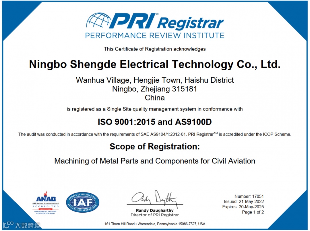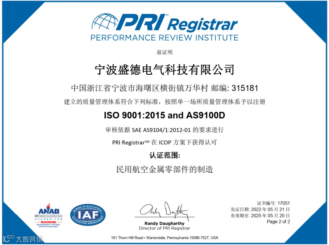 AS9100 是一份在ISO 9001 质量体系要求基础上开发的航空航天标准,其中加入了航空航天行业所建立的有关质量体系的附件要求,以满足DOD, NASA,以及FAA 等监管机构的质量要求。此标准旨在为航空航天行业建立统一的质量管理体系要求。