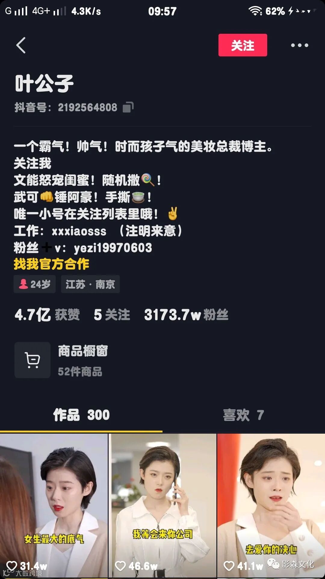 到了第二天,抖音又给我推了几个这种类型的短视频,虽然粉丝数量几十万到几千万不等,也有些很相似,不是“脚踢渣男,拳打绿茶”、就是“富二代和父亲关系不好,独自出来闯荡被坏人陷害”、要么是“富二代喜欢上自家的打工小妹”。但是小编看的很高兴。