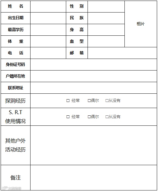 中法国际洞穴技术学校第十四届培训报名表