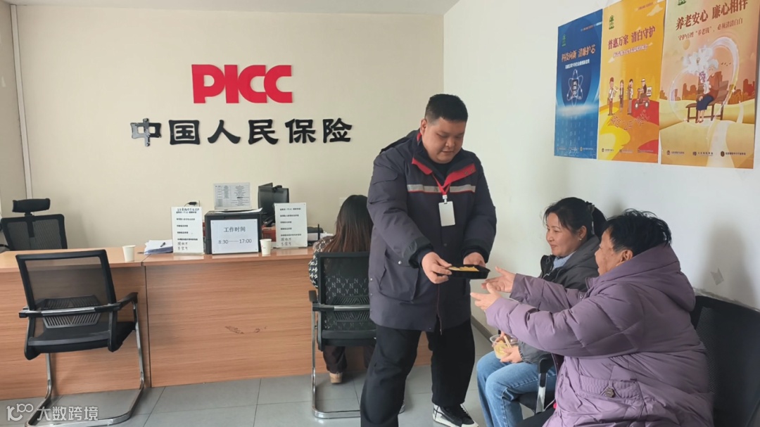(在北京,人保财险理赔员坚守服务岗位,保障客户业务正常办理,并贴心地为客户递上热饺子。)