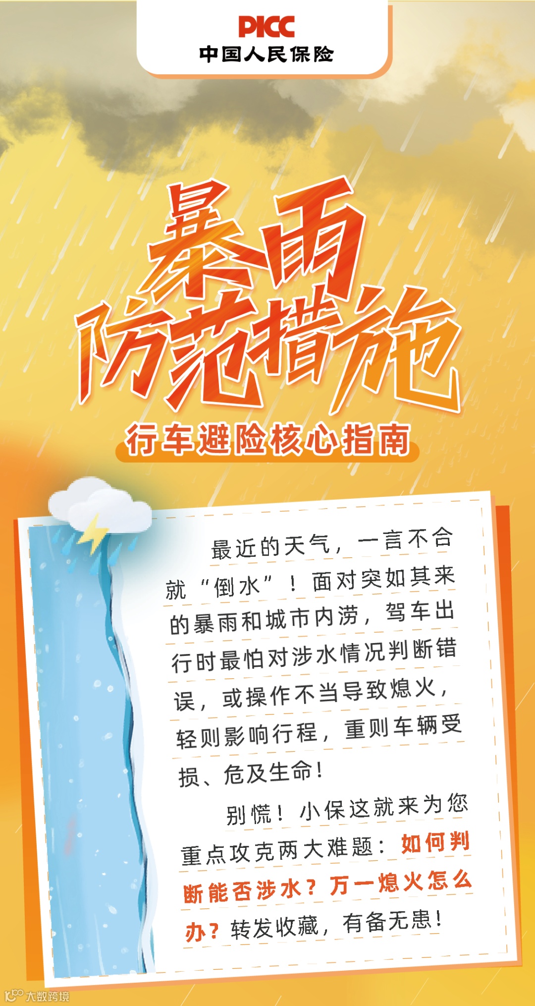 暴雨突袭,爱车变“船”?涉水、熄火自救指南